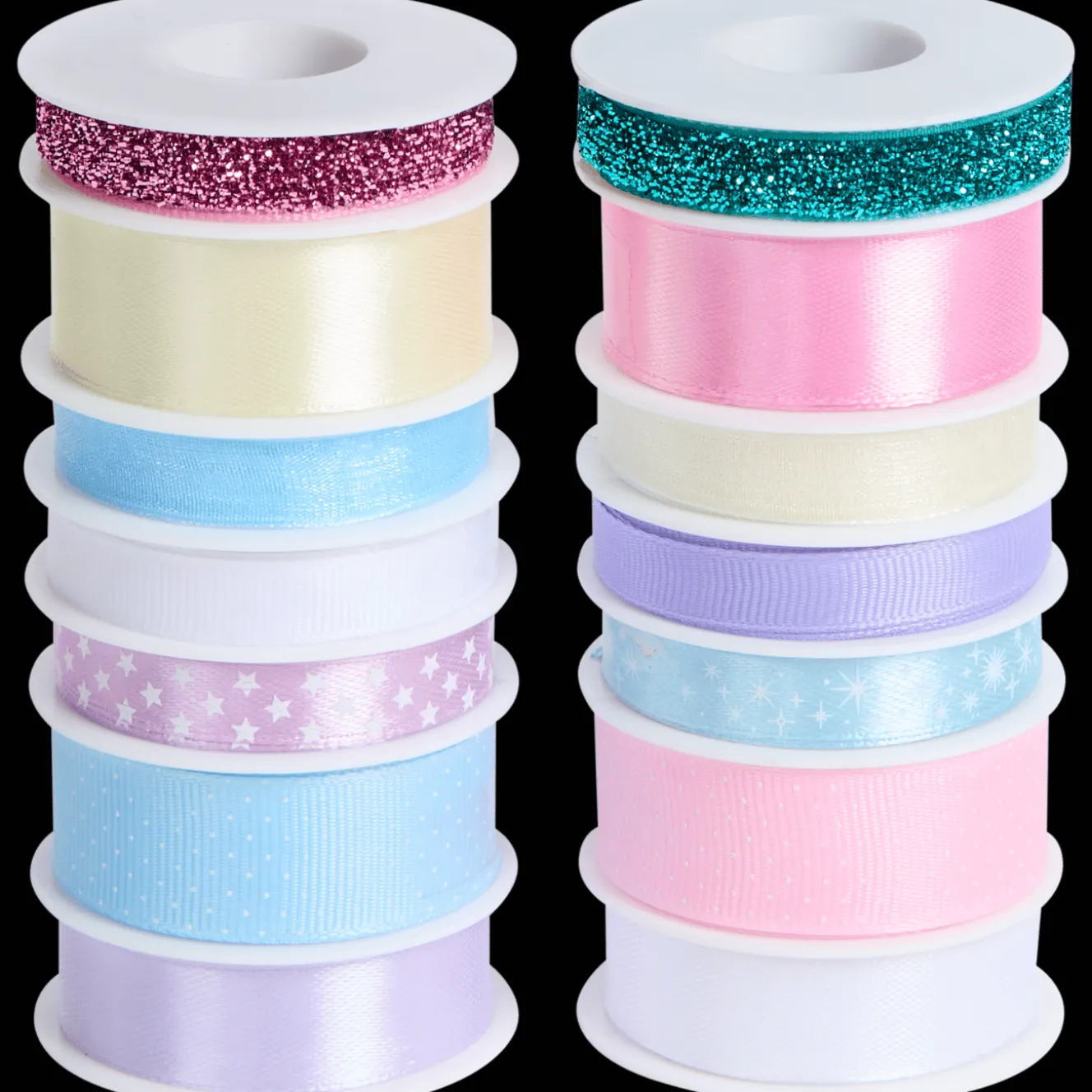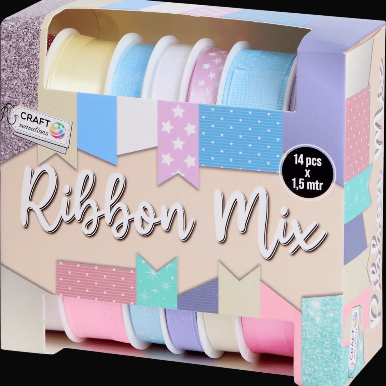 Geef je cadeaus een extra feestelijke touch met deze mix aan cadeaulinten. De set bevat 14 linten van 1,5 meter in allerlei verschillende kleuren, maten en afwerkingen, van glitters tot satijnlook, mét en zonder printje.