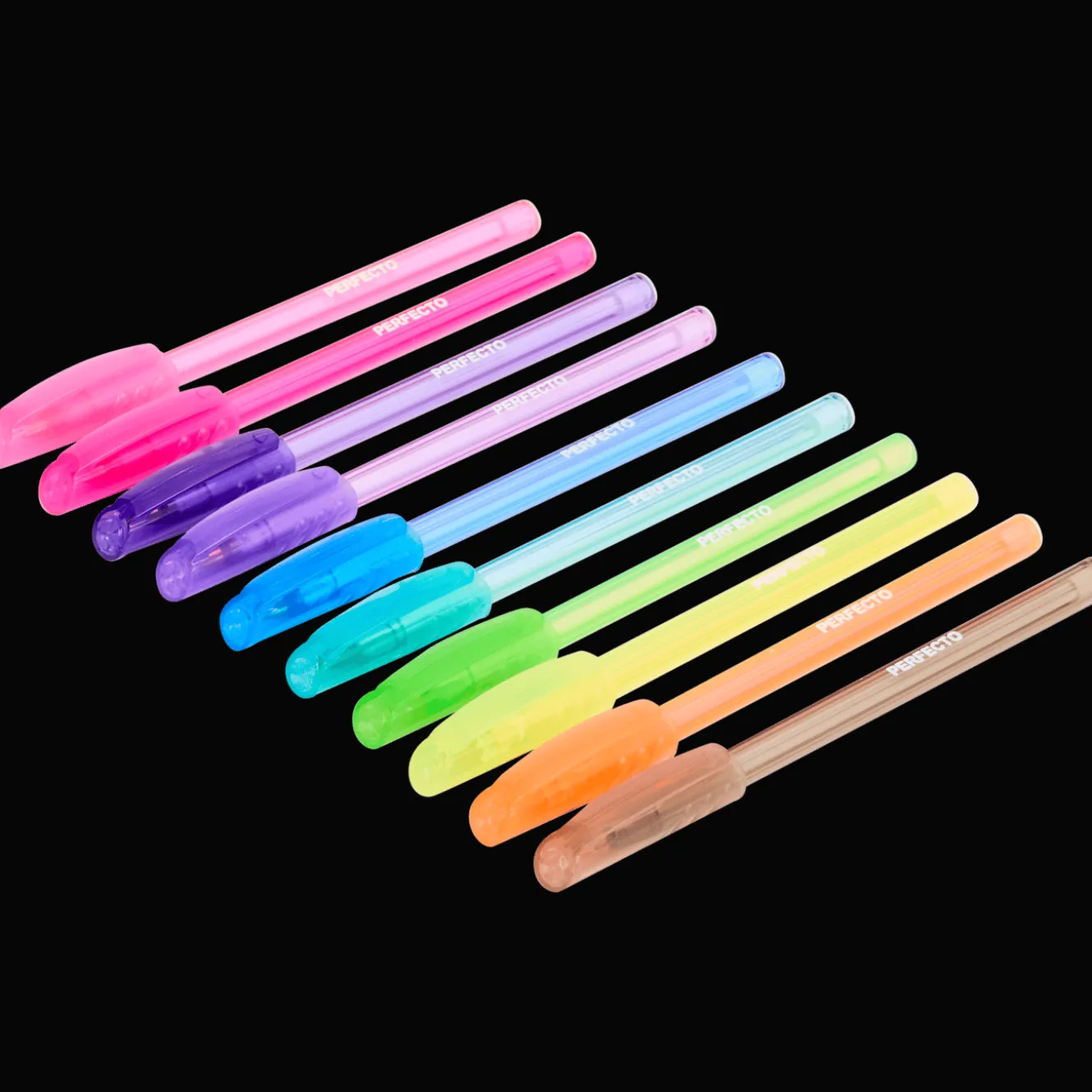Vrolijke balpennen in diverse kleuren.