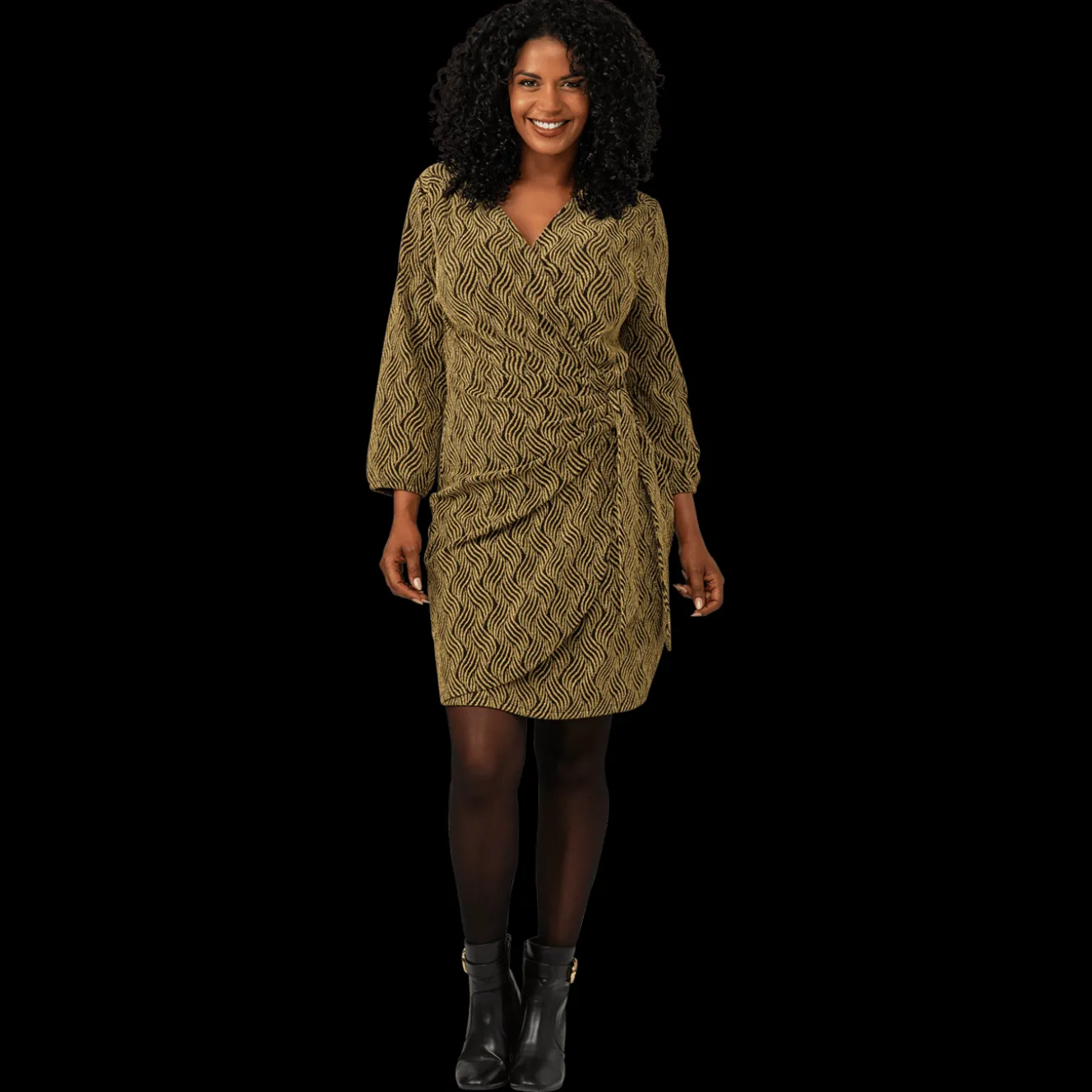 Prachtige wikkeljurk met strik aan de zijkant waardoor hij mooi aansluit op het lichaam. Leuk voor in het najaar met kerst of oud en nieuw. Of steel de show op een ander moment in het jaar!