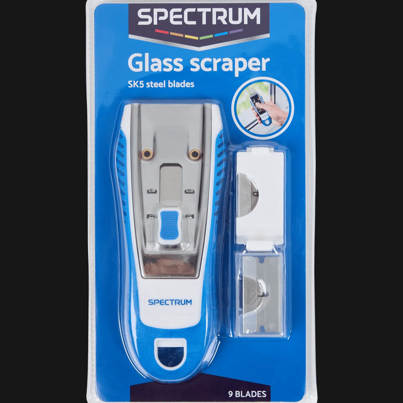 Met deze glasschraper van Spectrum verwijder je gemakkelijk verf, lijm of stickers van glas of een glazen oppervlak.