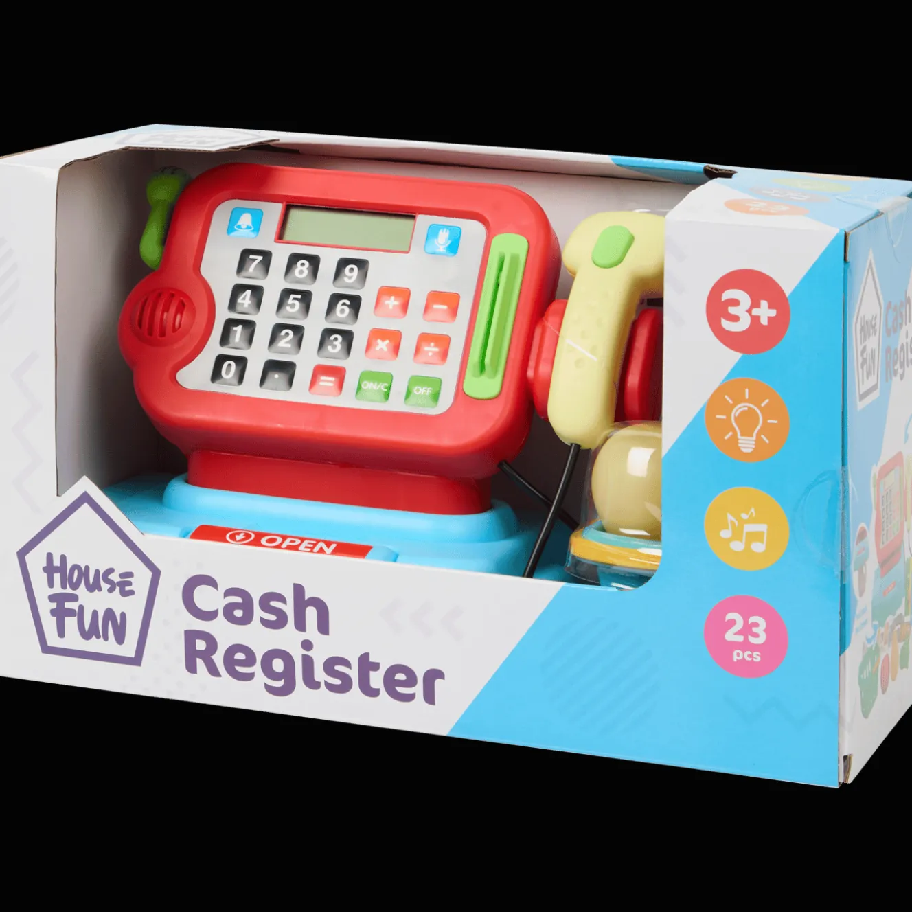 Katsjing! Scan alle producten met deze kassa. Door het licht en geluid lijkt het net echt. Vergeet je niet het geld in de lade te doen?