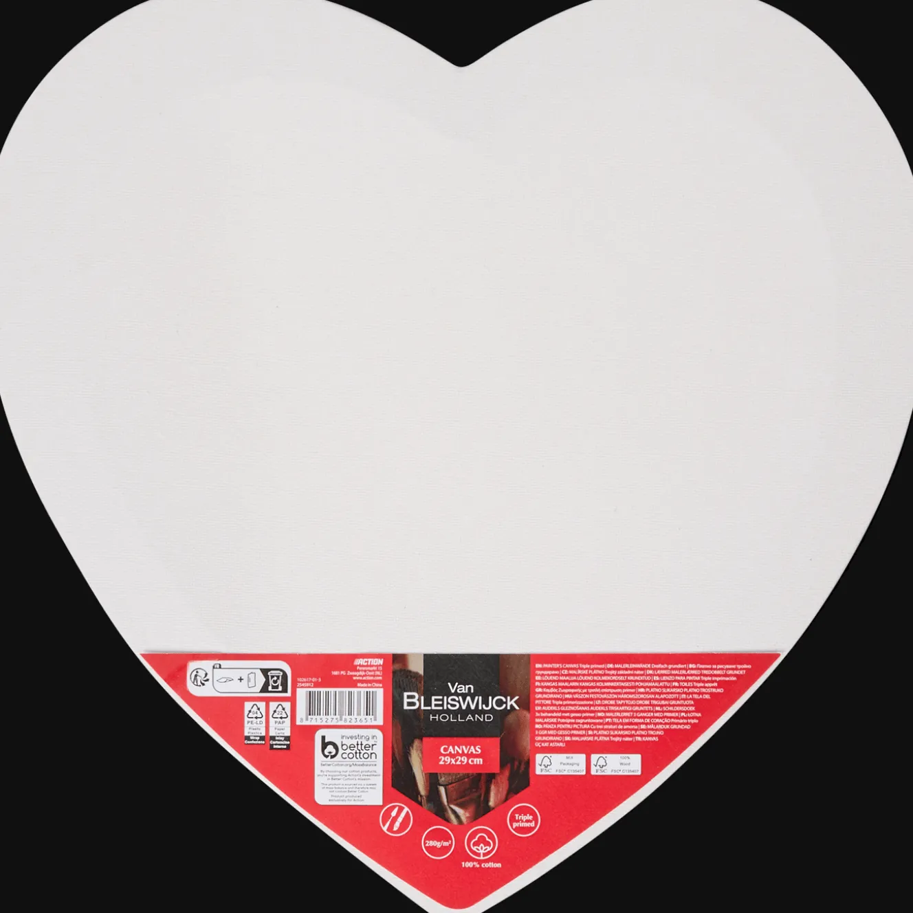 Opgespannen schildersdoek in de vorm van een hart om zelf te beschilderen.