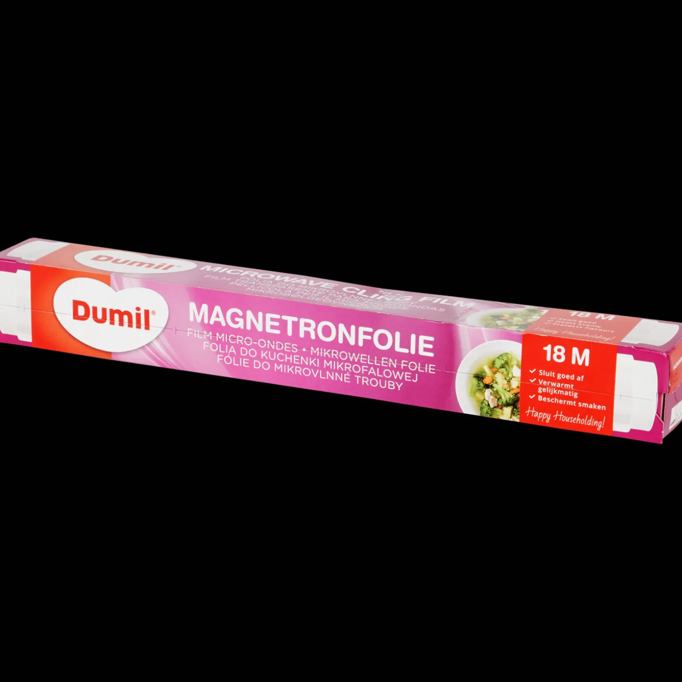 Magnetronfolie beschermt eten tegen uitdroging in de koelkast en tijdens het opwarmen in de magnetron.