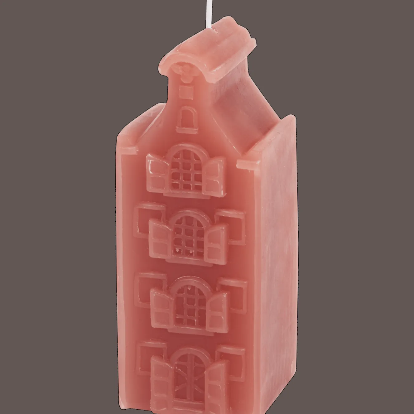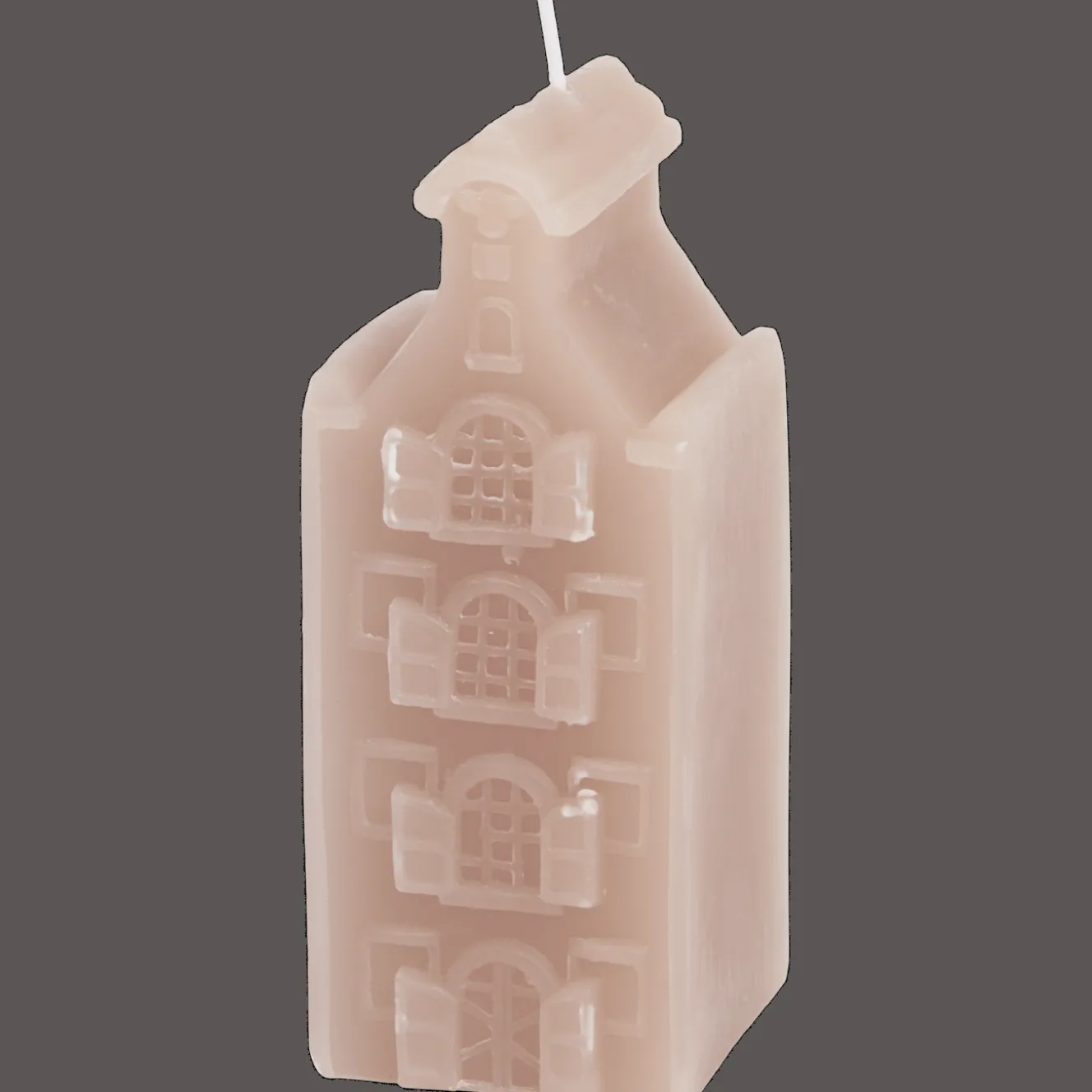 Kaars in de vorm van een klassiek grachtenpand. Zet er een paar bij elkaar voor een mooi effect.