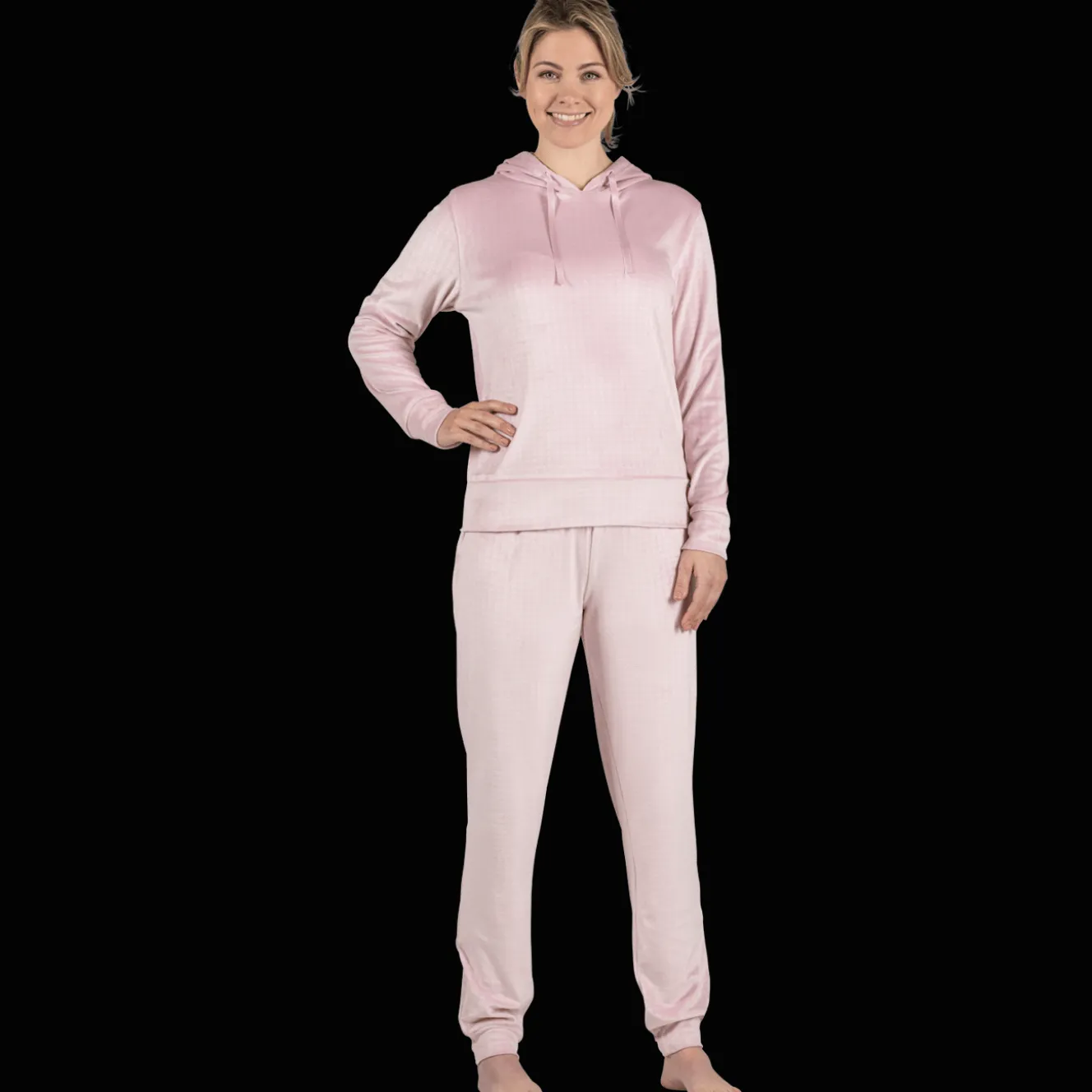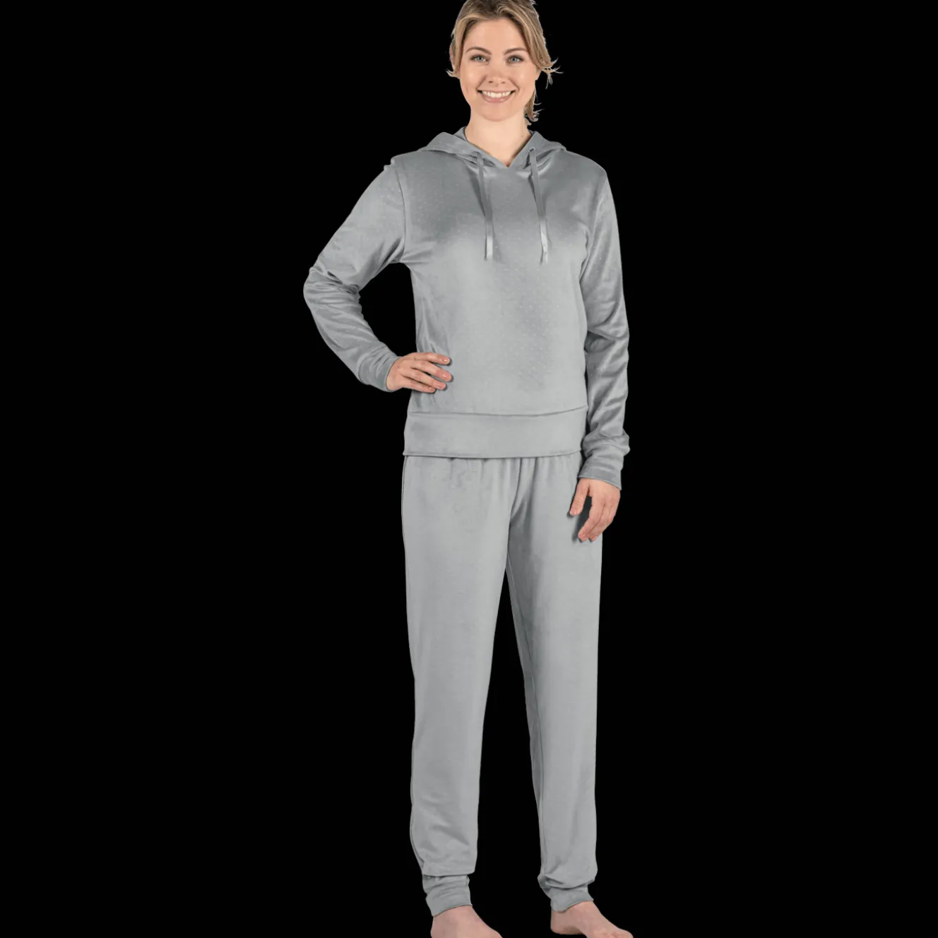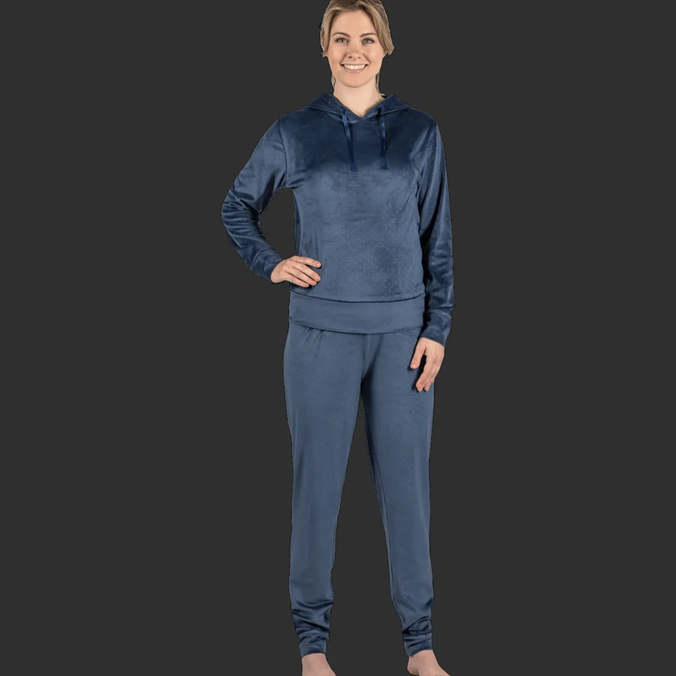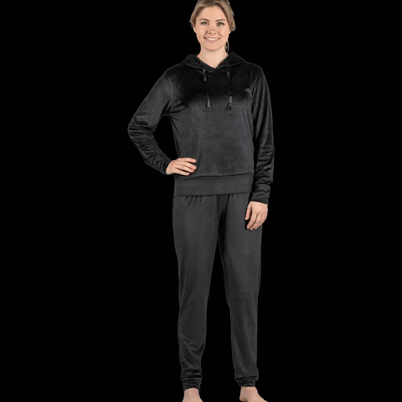 Dit huispak is het ultieme comfort-genot. De fleece stof is zo heerlijk zacht. Door de combinatie van de ribstof met velvet wil jij dit pak nooit meer uit doen. Verberg je onder de capuchon en niemand die je meer lastig kan vallen.