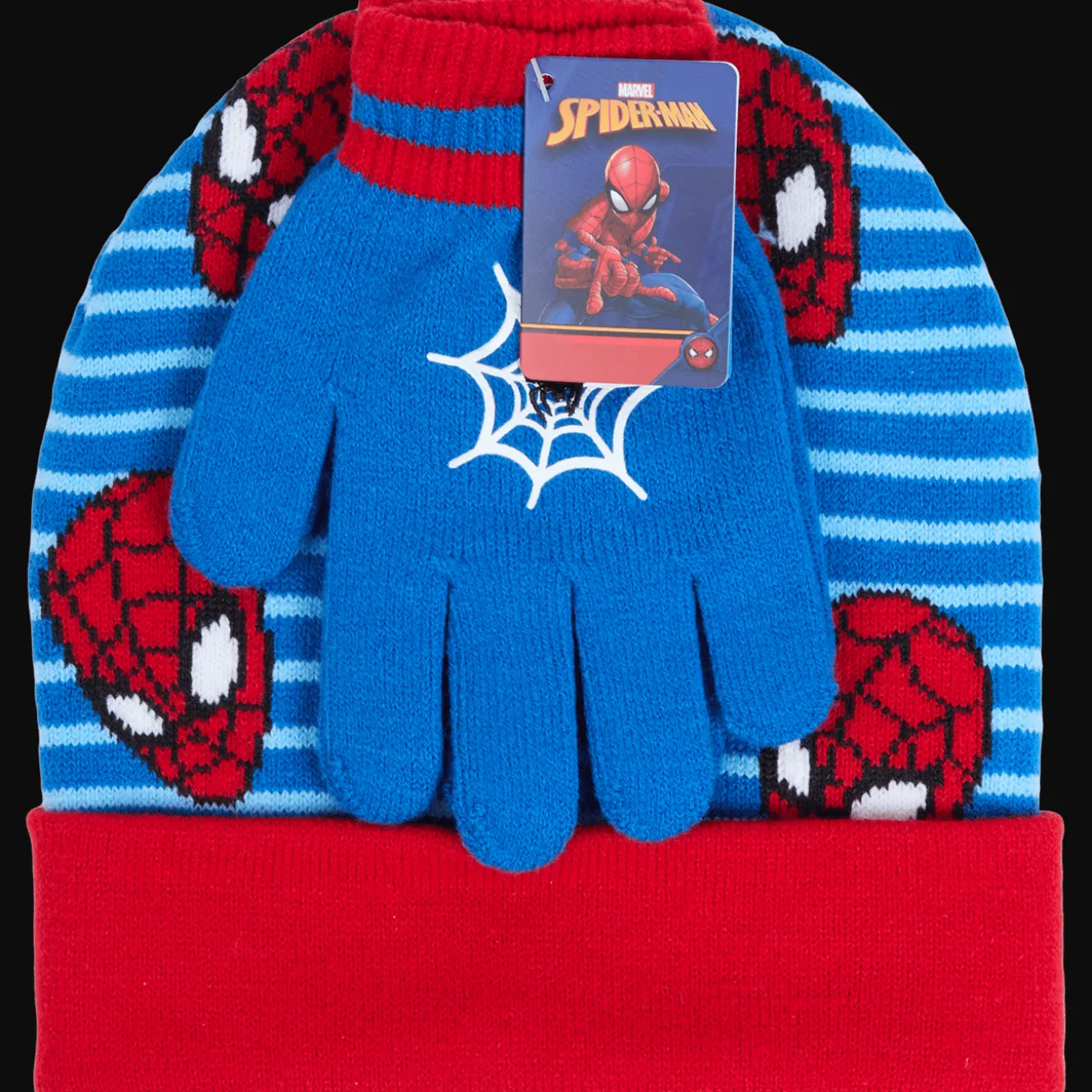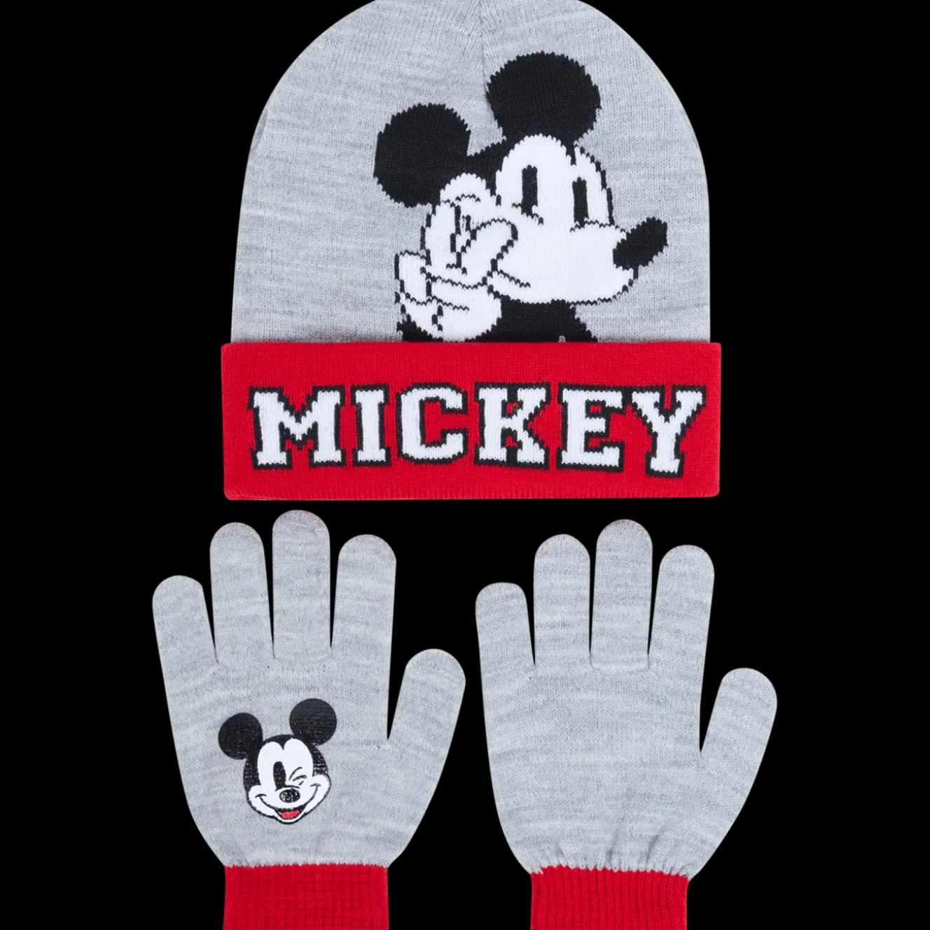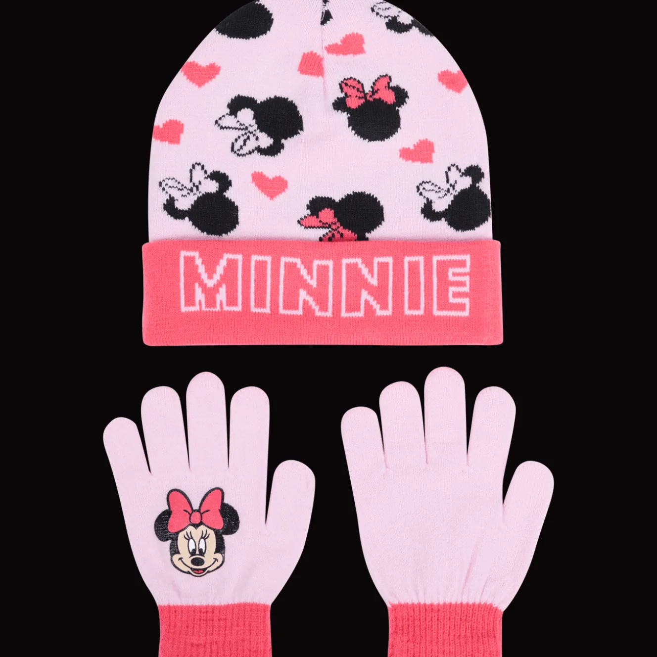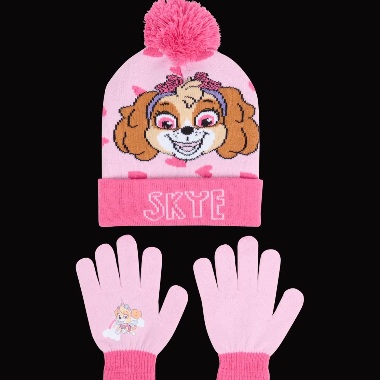 Warme set van een muts en handschoenen voor de winter. Voorzien van kleurrijke prints met bekende tv-figuren.