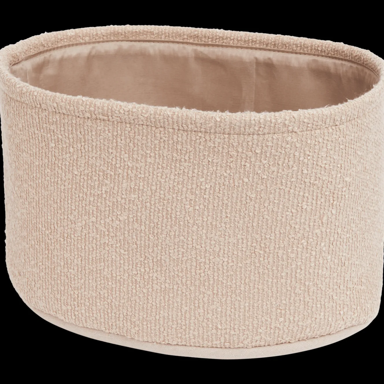 Organiseer al je spulletjes in deze mooie bouclé opbergmand. De ovale mand is gevoerd en past dankzij de neutrale tint in ieder interieur.